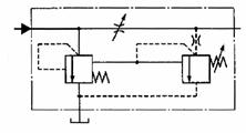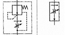 | Дроссель с обратным клапаном. С переменным дросселированием, со свободным проходом потока в одном направлении, но дросселированием потока в другом направлении | |