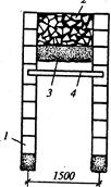 Рис. 13.2. Устройство монолитных полов из брекчии: 1- маячные ряды из камней правильной формы; 2- каменный бой; 3- цементная стяжка; 4- правило