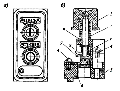 Рис 2.4. Кнопочный пост: а) – общий вид; б) – кнопочный элемент