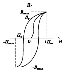 Если элемент магнитной цепи, например цилиндр из ферромагнитного материала, поместить в однородное магнитное поле, он намагничивается. Если после его намагничивания до состояния насыщения внешнее поле убрать (уменьшить до нуля), то цилиндр явится источником магнитного поля за счет намагниченности материала – остаточной намагниченности. Чтобы разрушить эту остаточную намагниченность, нужно создать внешнее поле, направленное противоположно полю, создаваемому цилиндром, для преодоления задерживающей, так называемой коэрцитивной силы Н с, которая стремится сохранить созданную микротоками намагниченность.