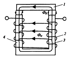 Магнитный поток создается током I, протекающим по обмотке катушки. Произведение тока на число витков катушки w определяет намагничивающую силу Iw.