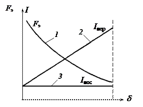 Важнейшей характеристикой электромагнита является механическая (тяговая) характеристика (рис. 3.5) представляющая собой зависимость усилия развиваемого электромагнитом F э, от величины воздушного зазора d.