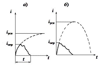 Рис. 4.3. Токоограничивающий эффект плавких вставок предохранителей: а – при постоянном токе; б – при переменном токе