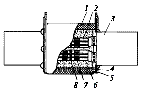 Фарфоровая, квадратная снаружи и круглая внутри, трубка 1 имеет четыре резьбовых отверстия для винтов, с помощью которых крепится крышка 4 с уплотняющей прокладкой 5. Плавкая вставка 2 приварена электроконтактной точечной сваркой к шайбам контактных ножей 3. Крышки с асбестовыми прокладками герметически закрывают трубку. Трубка заполнена сухим кварцевым песком 6. Плавкая вставка выполнена из одной или нескольких медных ленточек толщиной