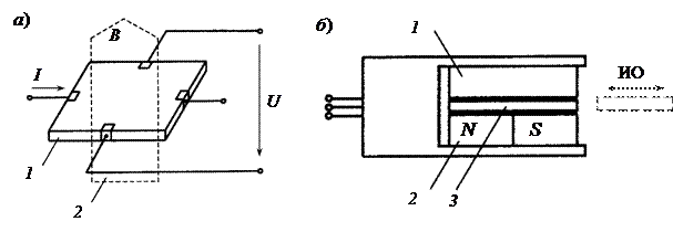 Рис. 8.12. Датчик Холла: а) – эффект Холла; б) – датчик Холла