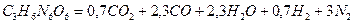 Полагая процесс адиабатным, в котором вся энергия расходуется на нагрев продуктов детонации, можно записать