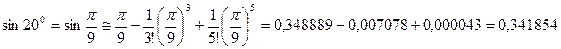 Если при разложении по формуле Тейлора ограничиться тремя первыми членами, получим: sinx =