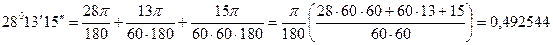 Для того, чтобы представить заданный угол в радианах, воспользуемся соотношениями: