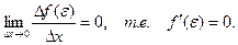 Пусть М = m. Так значения на концах отрезка равны, то хотя бы одно из значений М или m функция принимает внутри отрезка [a, b]. Обозначим e, a < e < b точку, в которой f(e) = M. Так как М- наибольшее значение функции, то для любого Dх (будем считать, что точка e + Dх находится внутри рассматриваемого интервала) верно неравенство:
