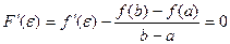 Функция F(x) удовлетворяет теореме Ролля. Действительно, она непрерывна на отрезке [a, b] и дифференцируема на интервале (а, b). По теореме Ролля существует хотя бы одна точка e, a < e < b, такая что F¢(e) = 0.