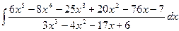 6x5 – 8x4 – 25x3 + 20x2 – 76x – 7 3x3 – 4x2 – 17x + 6