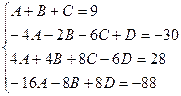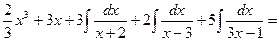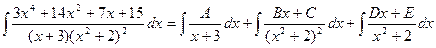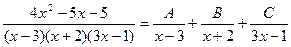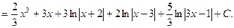 Для того, чтобы избежать при нахождении неопределенных коэффициентов раскрытия скобок, группировки и решения системы уравнений (которая в некоторых случаях может оказаться достаточно большой) применяют так называемый метод произвольных значений. Суть метода состоит в том, что в полученное выше выражение подставляются поочередно несколько (по числу неопределенных коэффициентов) произвольных значений х. Для упрощения вычислений принято в качестве произвольных значений принимать точки, при которых знаменатель дроби равен нулю, т.е. в нашем случае – 3, -2, 1/3. Получаем: