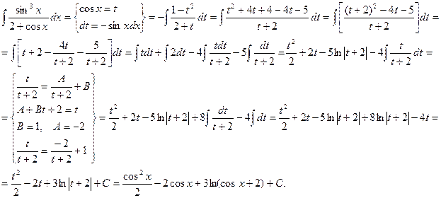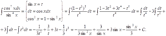 По аналогии с рассмотренным выше случаем делается подстановка t = cosx.