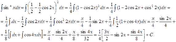Иногда при интегрировании тригонометрических функций удобно использовать общеизвестные тригонометрические формулы для понижения порядка функций.