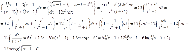 Если в состав иррациональной функции входят корни различных степеней, то в качестве новой переменной рационально взять корень степени, равной наименьшему общему кратному степеней корней, входящих в выражение.