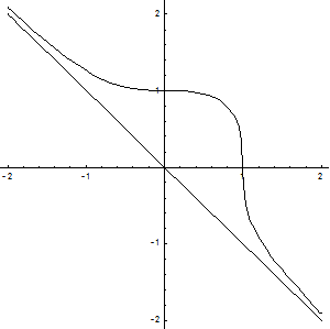 Точки (0,1) и (1,0) являются точками перегиба, т.к. y¢¢(1-h) < 0; y¢¢(1+h) >0; y¢¢(-h) > 0; y¢¢(h) < 0 для любого h > 0.