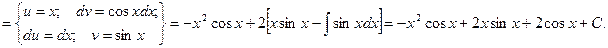 Второй интеграл, входящий в это равенство, будем брать по частям.