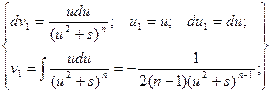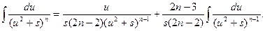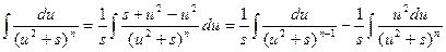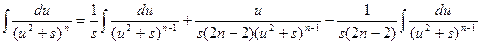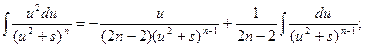 В полученном равенстве первый интеграл с помощью подстановки t = u2 + s приводится к табличному