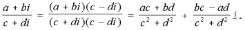 6. Деление комплексного числа a + bi на комплексное число c + di ¹ 0 определяется как операция обратная умножению и выполняется по формуле: