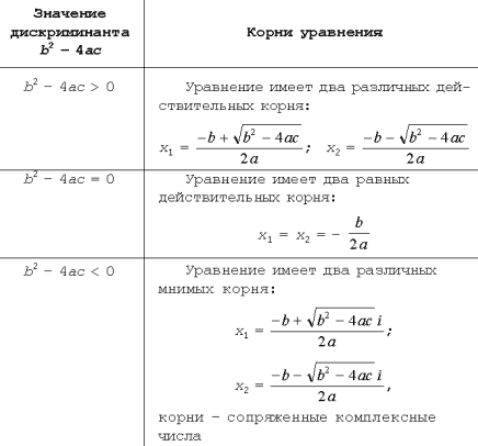 Итак, введение комплексных чисел позволяет разработать полную теорию квадратных уравнений. В поле комплексных чисел разрешимо любое квадратное уравнение.