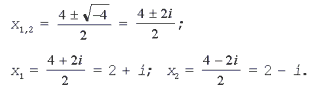 Решение. D = 16 – 4•1•5 = – 4 < 0, уравнение имеет мнимые корни: