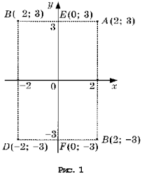 На рисунке 1 изображена координатная плоскость. Числу 2 + 3i соответствует точка A(2, 3) плоскости; числу 2 – 3i – точка B(2, – 3); числу – 2 + 3i – точка C(– 2, 3); числу – 2 – 3i – точка D(– 2; – 3). Числу 3i соответствует точка E(0, 3); а числу – 3i – точка F(0, – 3). Итак, каждому комплексному числу соответствует единственная точка координатной плоскости и, обратно, каждой точке координатной плоскости соответствует единственное комплексное число, при этом двум различным комплексным числам соответствуют две различные точки координатной плоскости. Ясно, что действительным числам x + 0i соответствуют точки оси абсцисс, а чисто мнимым числам 0 + yi, где y ¹ 0 – точки оси ординат. Поэтому ось Oy называют мнимой, а ось Ox – действительной. Сопряженным комплексным числам