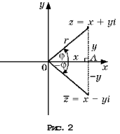 Расстояние r от начала системы координат до точки, соответствующей комплексному числу z, называют модулем этого числа. Тогда по теореме Пифагора (рис. 2) имеем: r2 = x2 + y2 = (x + yi)(x – yi) = z•z.