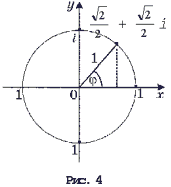 Если комплексное число z изображается точкой оси абсцисс (т.е. является действительным числом), то его модуль совпадает с абсолютным значением. Все комплексные числа, имеющие модуль 1, изображаются точками единичной окружности – окружности с центром в начале системы координат, радиуса 1 (рис. 4).