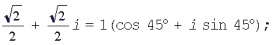 Для числа i имеем r = 1, j = 90°, поэтому i = 1(cos 90° + i sin 90°);
