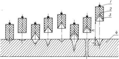 1 —.заряд ВВ; 2 - облицовка; 3 - пест; 4 - кумулятивная струя