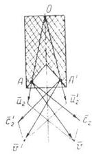 Рассмотрим физическую сущность явления кумуляции на примере взрыва цилиндрического заряда с конической выемкой без облицовки (рисунок 8.2). Проводя из точки инициирования О взрывные лучи 0А и 0А/ к точкам поверхности выемки, легко установить, что продукты взрыва со всех точек этой поверхности разлетаются в направлении к оси заряда и соударяются друг с другом. В результате этого происходит их уплотнение и образуется газовый поток, направленный вдоль оси заряда, который носит название газовой кумулятивной струи. Наименьшее сечение струи называется кумулятивным