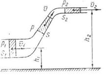 По закону сохранения энергии работа А, затрачиваемая на изменение скорости v и высоты h течения жидкости массой ni, равна сумме изменения потенциальной и кинетической энергий, то есть