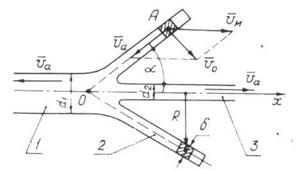 Рассмотрим картину соударения двух струй жидкости (риунок. 8.7). В результате столкновения этих струй образуется расходящийся поток жидкости, который называется пеленой. Обозначим скорость, плотность и диаметр первой струи соответственно