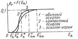 Рисунок 9.26. Зависимость вероятности пробития преграды рп от удельной энергии осколка
