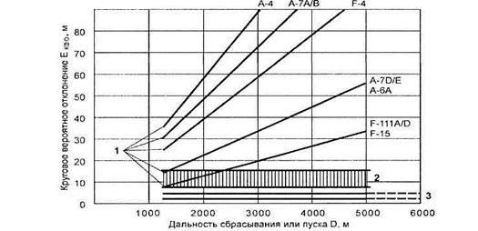 Рисунок 10.15. Ошибка попадания обычных и управляемых бомб и ракет: