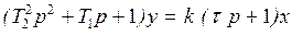 где T 22 = a 0/ a 2; T 1 = a 1/ a 2; t = b 0/ b 1 - постоянные времени; k = b 1/ a 2.