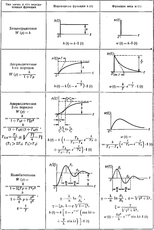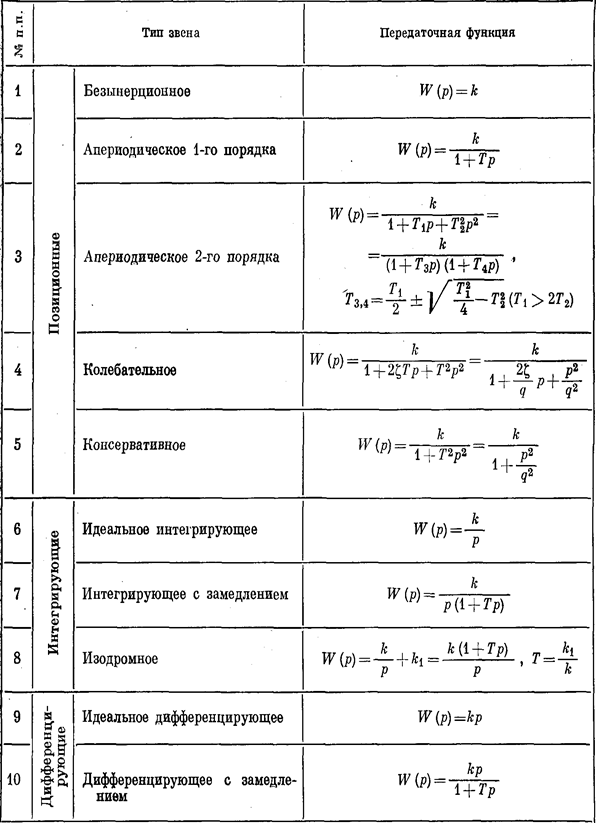 Таблица 3.2Временные характеристики позиционных звеньев