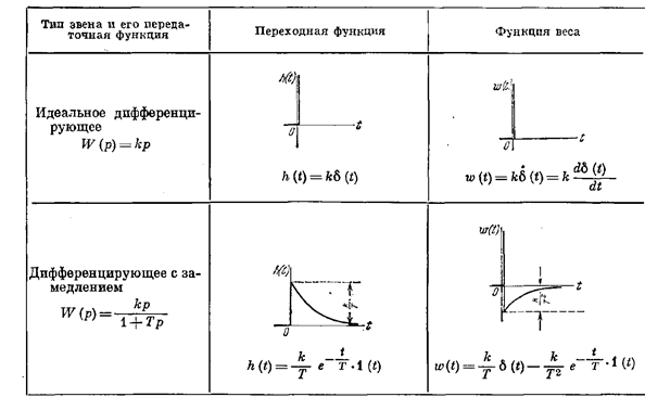 Временные характеристики дифференцирующих звеньев