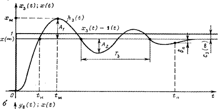 Отметим, что и само первое максимальное отклонение х м, возникающее от возмущения на входе объекта, является показателем качества. При формировании требований к системе указывают допустимое значение максимального отклонения.