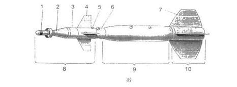 Разработка и испытания первых образцов УАБ с лазерной флюгерной ГСН на базе штатных неуправляемых авиабомб Мк 82, Мк 83, Мк 84, М117 (рисeyjr 80), М118 были выполнены в период 1965-1968 гг. в рамках программ "Пэйв Уэй" и "Скиппер", которые затем были приняты на вооружение. УАБ, созданные в рамках программ "Пэйв Уэй-1, -II, -III", разрабатывались по единым принципам на базе существующих обычных АБ и отличались лишь качественными и некоторыми конструктивными характеристиками, повышающими их боевые возможности. УАБ, созданные по этим программам, конструктивно-компоновочно практически одинаковы (рисунок 10.20): передний отсек со стандартным лазерным флюгерным координатором цели, блоком наведения, блоком управления с источником питания, рулями и приводом рулей; боевая часть штатной АБ; хвостовая часть с аэродинамическими поверхностями элементов конструкции, сопрягаемые с БЧ, отличаются друг от друга размерами в зависимости от калибра. Все остальные элементы системы идентичны. УАБ имеют аэродинамическую схему "утка" и общую с обычными АБ систему подвески на носитель.