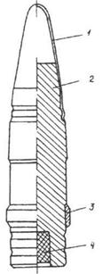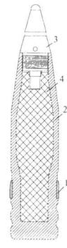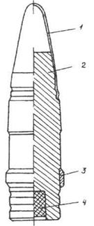 3 - медный ведущий поясок, 3 – взрывчатое вещество,
