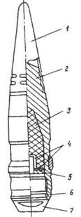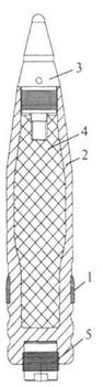 В головной части снаряда располагается баллистический обтекатель 1, изготавливаемый из алюминиевого сплава.