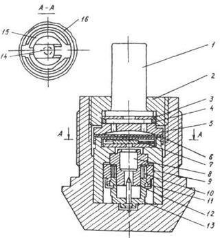 жесткий, 12 — втулка верхняя, 13 — ударник инерционный с жалом,