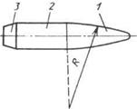 В пуле (рисунок 12.23) различают три части: головную (оживальную) 1, цилиндрическую (ведущую) 2 и хвостовую (коническую) 3. Чем выше начальная скорость пули, тем больше должен быть радиус R образующей оживальной части. Оптимальная длина головной части при начальных скоростях 600... 1000 м/с находится в пределах (2,5... 3,5)d. Носик пули слегка притуплён, что благоприятно сказывается на уменьшении сопротивления.