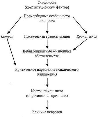 А.И. Захаров предлагает следующую схему формирования неврозов у детей и подростков.