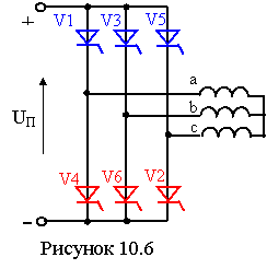 Рассмотрим принцип действия АИ без учета электромагнитных коммутационных процессов, считая тиристоры идеальными ключами (рисунок 10.6).