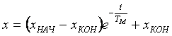 Поскольку решение представляет собой экспоненту, за время t=3TM значение х достигает 0.95 от установившегося значения, т.е. можно считать процесс завершенным.