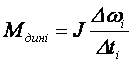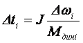 которая разбивается на n участков. На каждом участке динамический момент равен Мдинi. Переходя от бесконечно малых приращений к конечным приращениям, уравнение движения (3) записываем для i – го участка, как