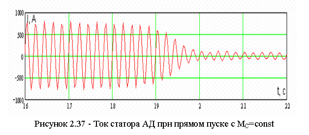 Ниже приведены кривые переходных процессов асинхронного двигателя, рассчитанные в приложении «Mathcad»