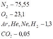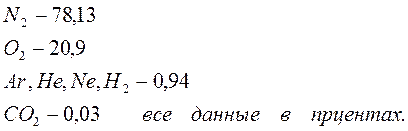 Состав сухой части атмосферы воздуха можем записать на основании известных табличных данных: